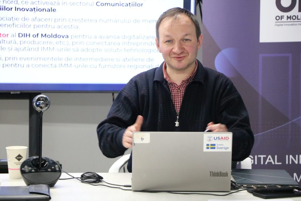 In this context, attendees benefited from a dedicated training on European support for digital investments delivered by Lidia Mocanu, expert at the North-East Regional Development Agency (ADR Nord-Est) in Romania, who highlighted the instruments and support mechanisms available for innovative companies. Later, Olga Andriuța, Moldova’s contact point for the Digital Europe Programme, presented the opportunities offered by the program, with a special focus on project calls relevant for the entrepreneurial sector and innovation organizations.