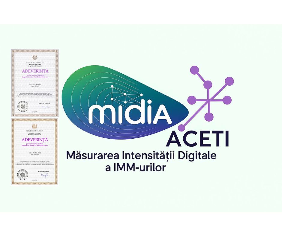 The Association for the Development of Electronic Communications and Innovative Technologies (ACETI) has officially registered with the State Agency on Intellectual Property of the Republic of Moldova (AGEPI) the copyright for the Instrument for Measuring the Digital Intensity of Small and Medium-sized Enterprises (MIDIA), developed within the framework of the project “Digital Maturity in Innovative Regions”, funded by the Government of Switzerland and Helvetas Moldova through the OPTIM Project.