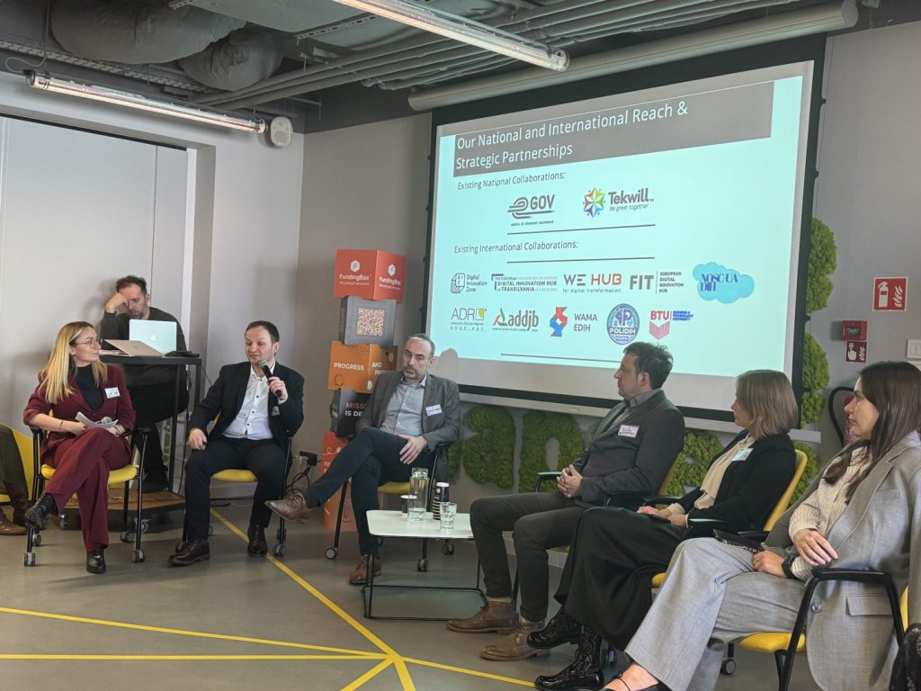 During the session dedicated to cross-border collaboration, Mircea Petic presented examples of regional cooperation and joint initiatives among European hubs in a workshop setting. His intervention highlighted Moldova’s experience in developing digital innovation projects and the partnership opportunities available for technology ecosystems across the region.