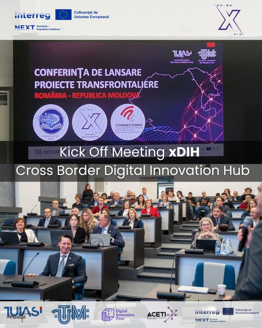 Evenimentul de lansare s-a desfășurat în cadrul Conferinței de lansare a proiectelor transfrontaliere România–Republica Moldova, în prezența conf. dr. ing. Simona Caraiman – Prorector pentru Informatizare și Comunicații Digitale la TUIASI și manager de proiect xDIH, a domnului Ion Coșer – Consul General al Republicii Moldova la Iași, Danielei Pojar – Prorector la Universitatea Tehnică a Moldovei, și Cristinei Baghiu – Președinte Digital Innovation Zone.
