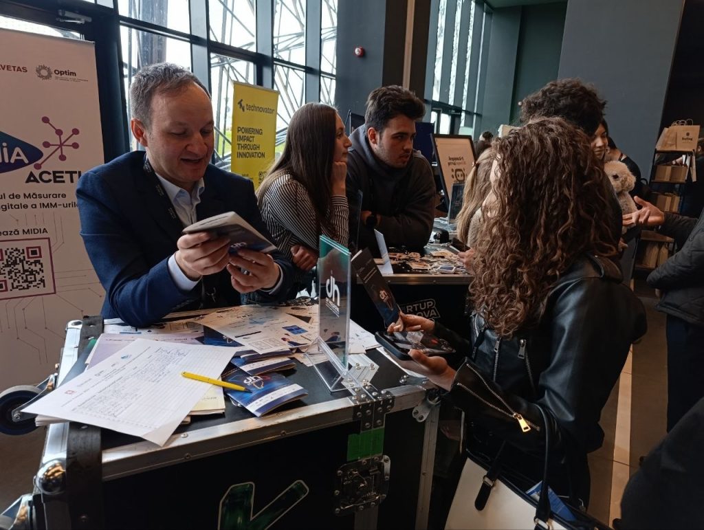 Pe durata evenimentului, participanții la Startup Moldova Summit 2026 au avut posibilitatea să afle mai multe despre instrumentul MIDIA și să interacționeze direct cu echipa ACETI la standul dedicat din zona expo. Acolo, aceștia au primit informații suplimentare despre modul de funcționare al instrumentului, beneficiile măsurării intensității digitale și pașii prin care companiile pot începe procesul de transformare digitală și acces la servicii de suport.