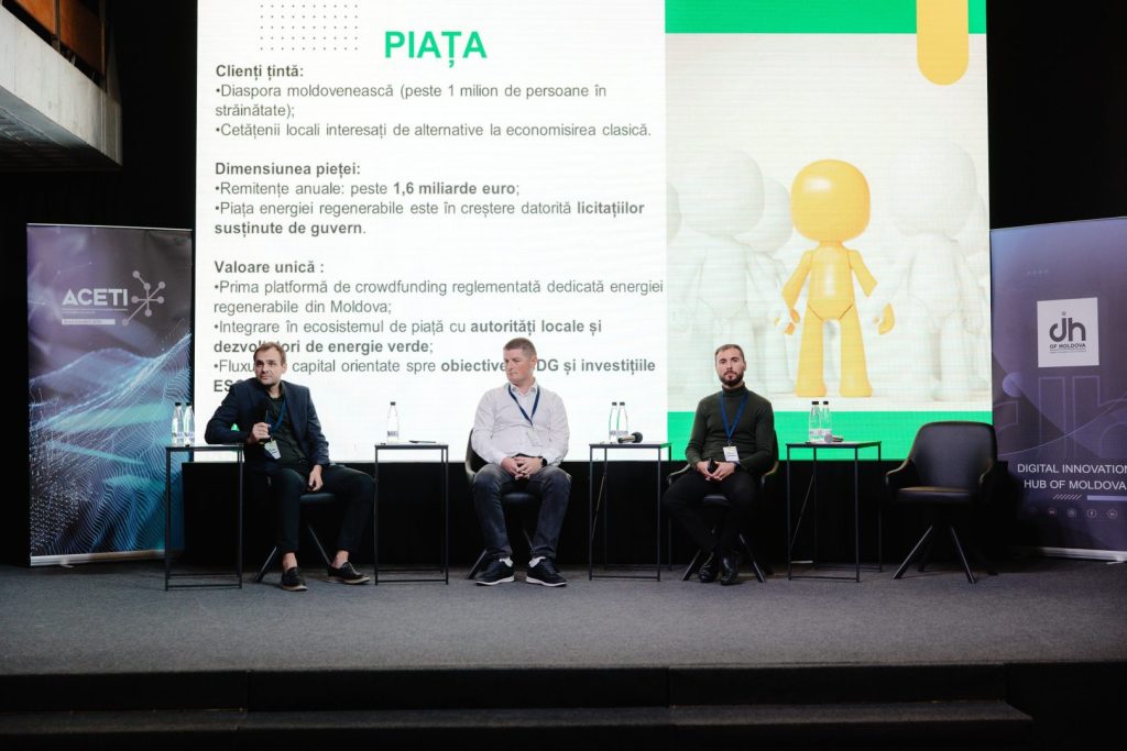 Mihail Guțu, CEO al companiei PowerIT, a prezentat MCrowd.md – prima platformă digitală de crowdfunding pentru tranziția energetică din Republica Moldova, o inovație națională care permite cetățenilor din țară și diasporă să participe direct la finanțarea proiectelor solare și eoliene. Platforma oferă transparență totală și posibilitatea ca fiecare utilizator să devină co-investitor în proiecte verzi, urmărind impactul prin indicatori de sustenabilitate.