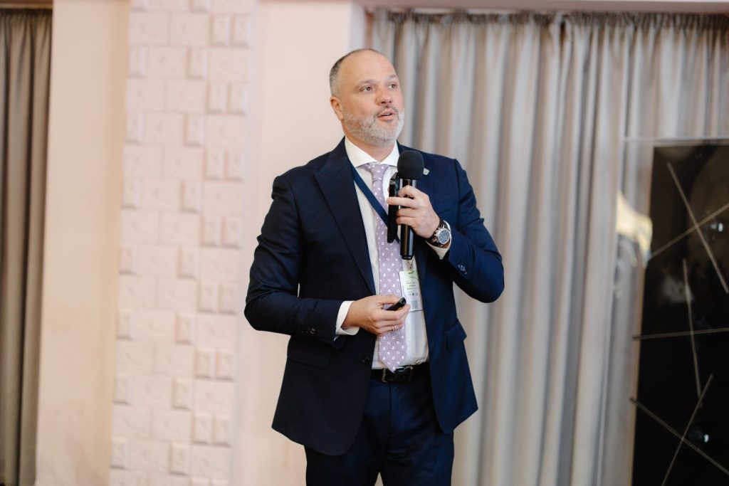 Liviu Pușca, reprezentant al Moldcell, a prezentat direcțiile strategice ale companiei în domeniul digitalizării și eficienței energetice, subliniind angajamentul Moldcell pentru dezvoltarea serviciilor inteligente, sustenabile și orientate către cetățean.